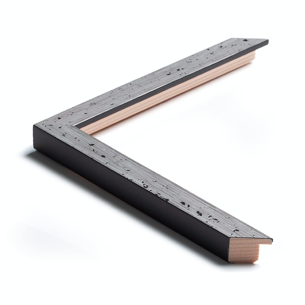 Flot sølvliste i råt look med sort kant.
