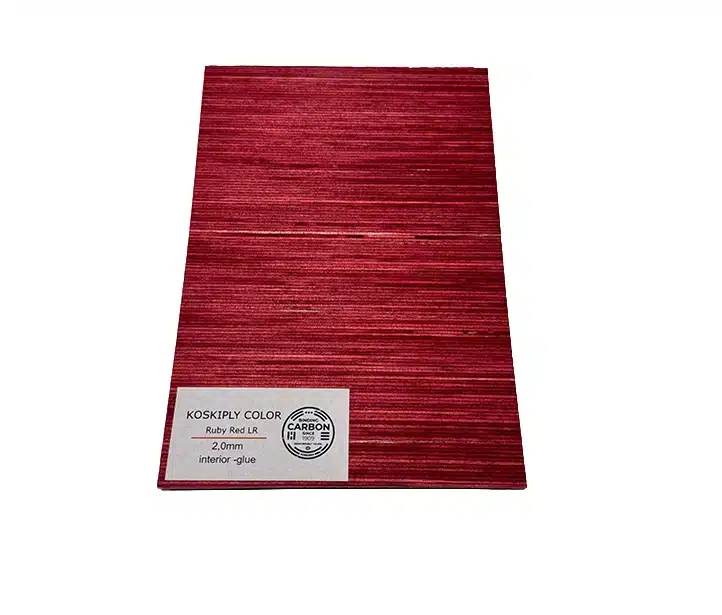 Ruby Red indfarvet Birk finér, “Antikstribet” LR-design. overflade, ens på begge sider
